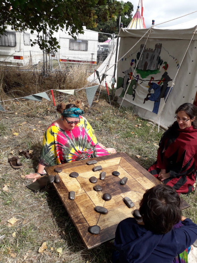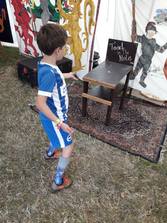 The area is run by jesters, and we were greeted on arrival by a lady with a dragon on her back. We played on a range of original and handmade reproduction medieval games. The quality of craftsmanship was astounding. We played bar skittles (devil among the tailors), snakes and ladders, bagatelle, toad in the hole and many more. We all loved it and would have happily spent much more time there. There was just so much to do!