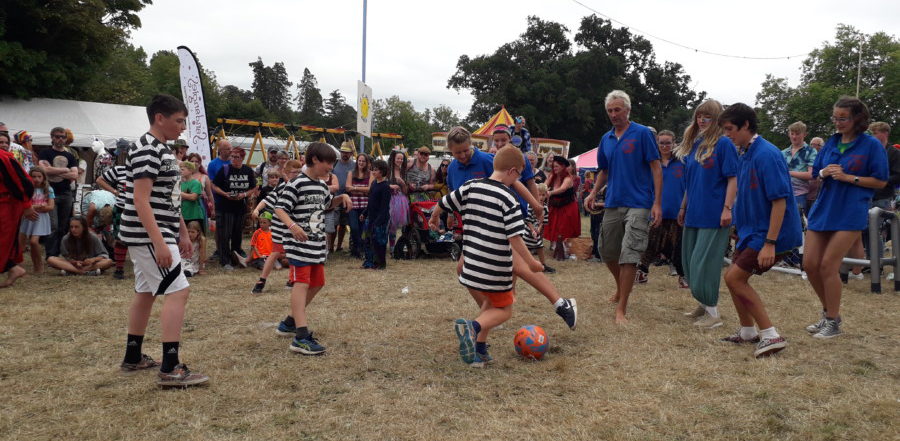 John (fiddle) and Matt (keyboards) formed the Levellers team along with several members of staff. There were well over forty Beautiful Days children eager to play and everyone got a turn. It began as a reasonably civilised affair and gradually descended into mayhem with a massive water fight at then end. The kids absolutely loved it! John and Matt hung around for a chat, signing autographs afterwards. We’re already looking forward to next year’s match.