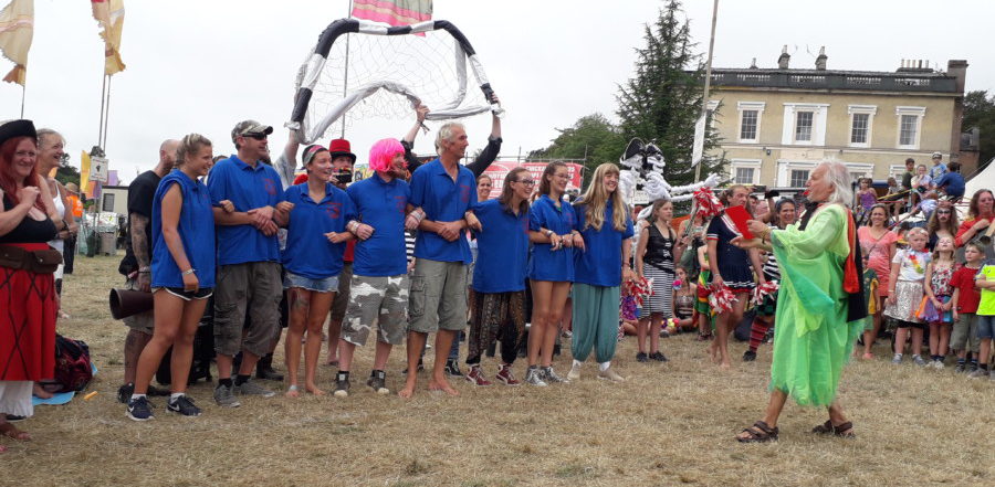 This was the first time, since my son developed a huge passion for football, that he’s managed to take part in the annual Levellers versus Beautiful Days Kids football match that takes place at 2pm on the Sunday. This year the band had got the time wrong, so we paraded around the kids’ field with drummers and stilt walkers in the procession while we waited for them.