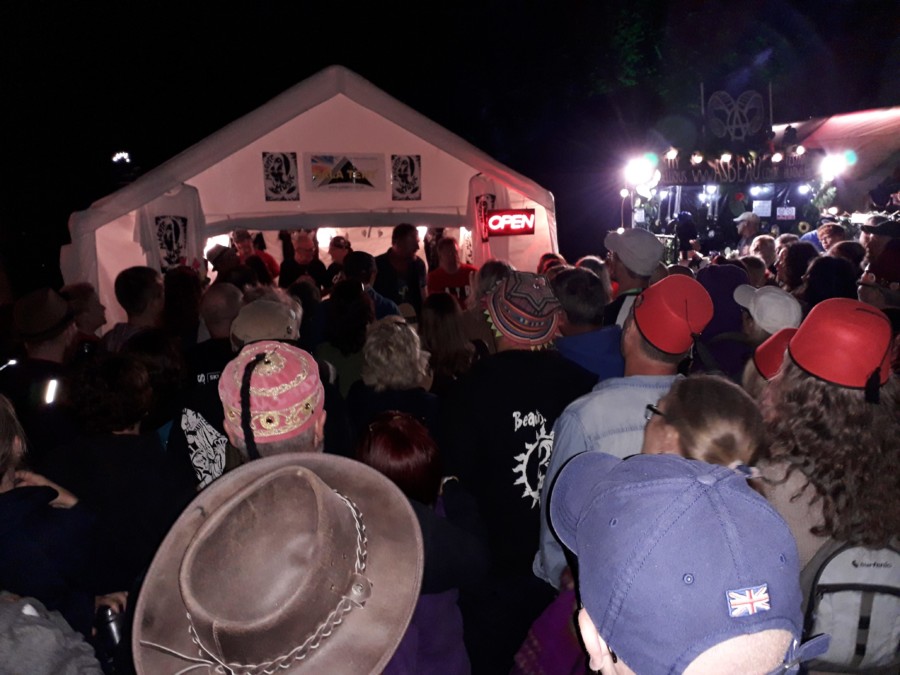While the festival officially begins on Friday, campsites along with most of the traders open on Thursday afternoon. On Thursday night festival goers were encouraged to don a fez and head to Dirty Davey’s bar for music and hijinks. There was also live music at the Gala Tent with a big crowd.