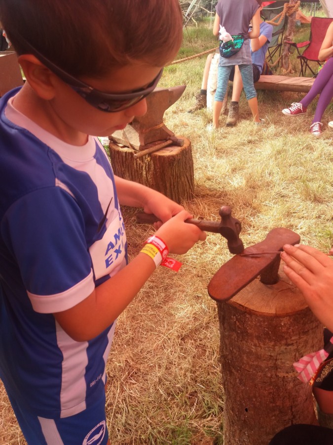 One of our favourite parts of Beautiful Days is the traditional skills and bushcraft area at the top of the hill. Alan Bruford runs Wildwood Escot within the estate throughout the year, and brings his team for an exclusive festival experience at Beautiful Days. Our children enjoyed forging, bread making, pendant making and tile glazing. We didn’t do any of the woodcraft/whittling crafts this year, but there were plenty of options of items to make.