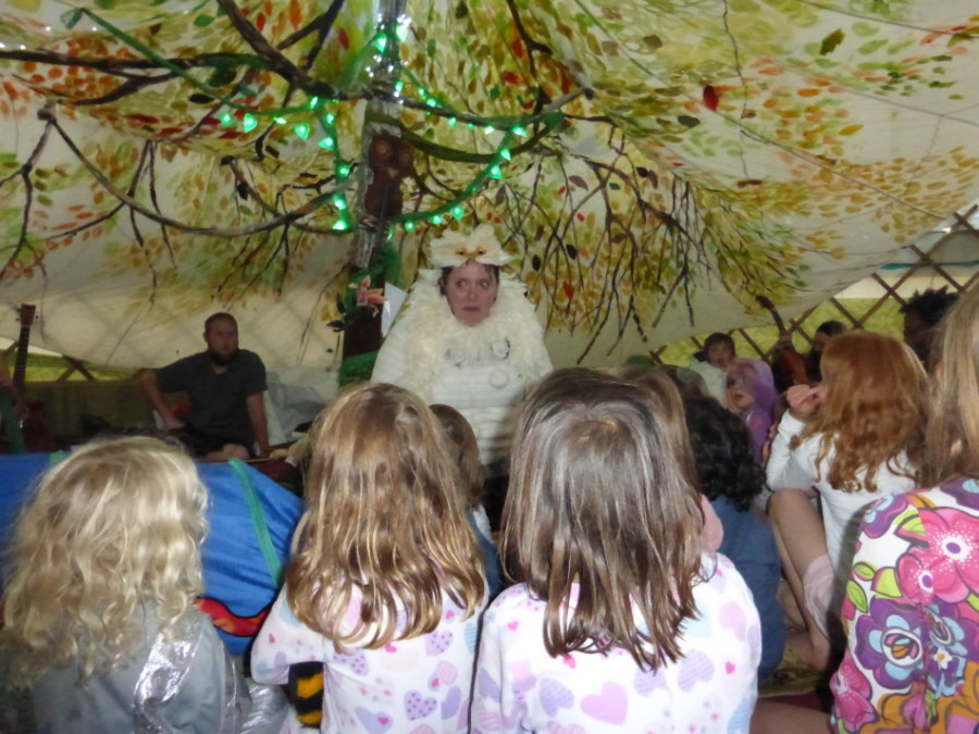 There are two types of family camping; for under fives which is further away from the main festival, and for families with older children closer to the entertainment. I think this works very well as you then meet people with similar aged children. There is also the wonderful family yurt (with its own campfire) in the young families campsite – a safe place for small children play, toast marshmallows, listen to songs or storytime, or just hide from the rain (a necessity this year!). The family camping seemed particularly spacious this year, meaning there was space for large family tents plus gazeebos and shelters.