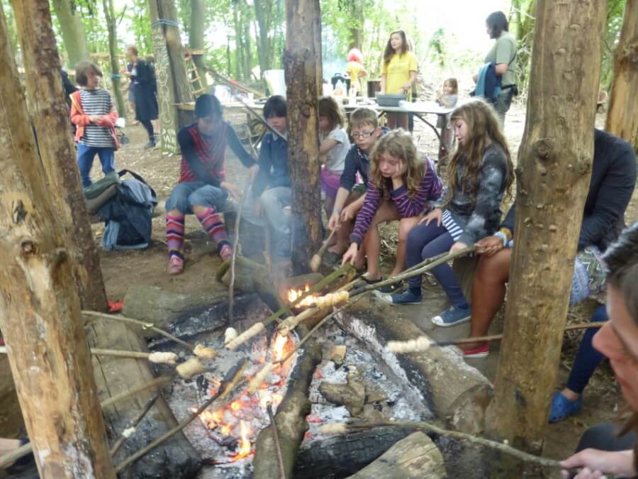 The woodland tribe is a separate area in the woods for children to explore their adventurous side. In an age where health and safety rules seem to be stopping our children experiencing exciting things, this area was a breath of fresh air. Huge cargo nets in the trees encouraged children to climb and jump and challenge their confidence. Another section was providing wood and nails for families to build their own climbing frames and huts in amongst the trees – something that every member of the family could enjoy. There were workshops on fire-building, crafting and cooking on the fire. The children made damper bread cooked on a stick over the fire, and climbed on ropes through the trees.