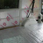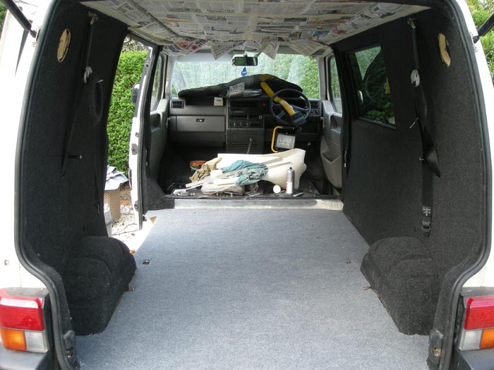 Steve insulated her all over with those fancy insulation boards with foil on the sides to keep us cool in summer and cosy in winter and then covered the walls with a felt fabric and carpeted the floor. She’s starting to look great, and she’s definitely not a builder’s van anymore!