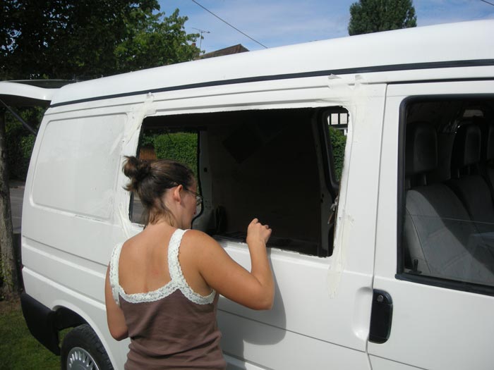 Putting the windows in really scared me. Cutting a big hole in the side of a perfectly good van just seemed wrong! I mean, what if we got the measurements wrong? That would be an expensive mistake… but I just held my breath and trusted my genius husband and now look at them: blinging nice windows if I do say so myself! Of course Steve now wants to lower it and get alloys (honestly, what is the point?!) apparently most people would understand why alloys are important… but not me!
