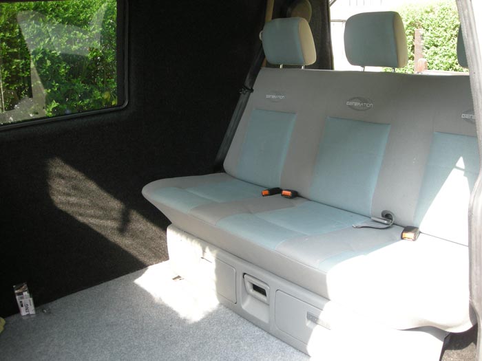 Steve finally tracked a back seat down on eBay, ‘Ah great!’ I said, ‘does it turn into a bed?‘ – ‘Err no,’ Steve replied, ‘it hasn’t got that section…’ Well, we never did track down the section for the bed so Steve ended up making one. One day I’ll get round to upholstering it but it works just fine for now.
