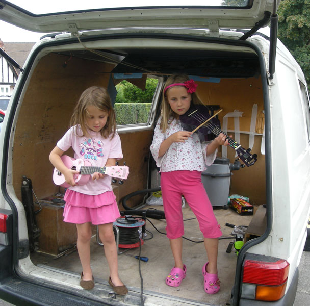 The next stage was to send it off to have a pop-top Reimo-style roof fitted so the girls could have a bedroom to sleep in. When she came back, suddenly something changed for me. I even stopped calling her an ‘it’. You could actually sleep in her now. The girls were besides themselves with excitement. Bizarrely, they rushed to get their ukuleles and do a spontaneous gig in the back of the van! So maybe this was going to be fun after all…