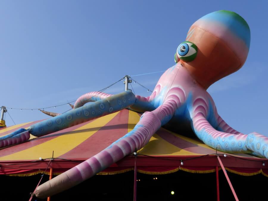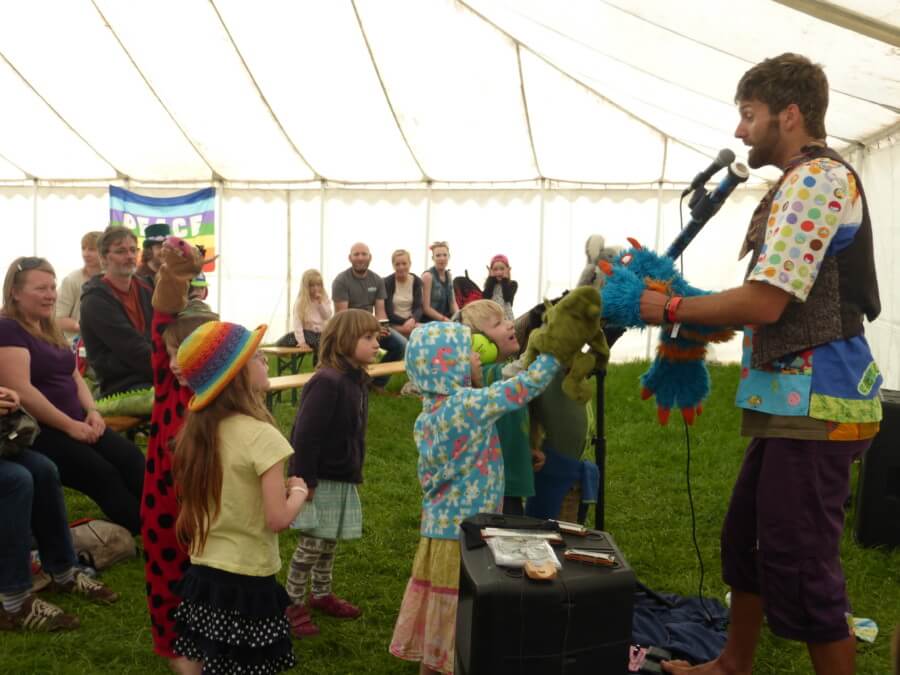 In the centre of the kids’ field was a large roped off area with circus toys such as diabolos, hula hoops and poi, with activity tents around it, so the whole area felt very safe and the children felt able to run off and play.