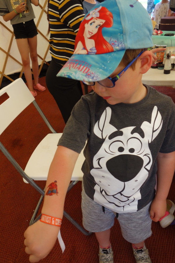 There were scheduled activities on The Village Green and in The Village Hall tent every hour. These ranged from science shows to music workshops, from family yoga to folk dance. In addition to this there were a number of tents circled around the village green, each filled with different drop in activities. You can spend time in the craft tent, paint a stone, plant a seed or write a story on a typewriter. The Lego tent was a big hit with my son whilst other excited children headed to the “Pamper Parlour” to get their festival look just right, with glitter, nail polish and tattoos.