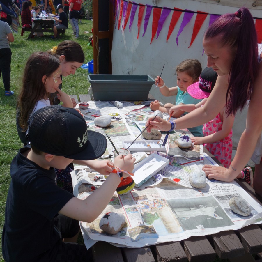 However the school doesn’t just benefit the kids who are lucky enough to get a place. It creates a lovely community atmosphere amongst the children in general. My very shy 5 year old daughter was shown how to do poi on the Saturday morning by a couple of tweens who were on the village green just offering to help any children they saw. Upon speaking to them it emerged that they had made some in the Rogues Hangout (the preteen/teen space) the day before and were keen to share their recently gained knowledge with anyone who looked like they might be interested.