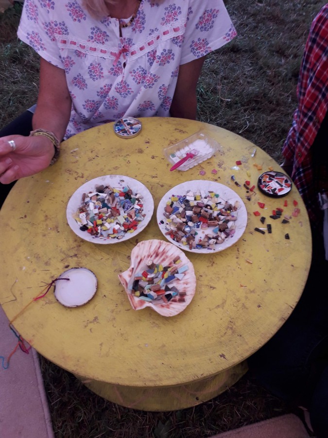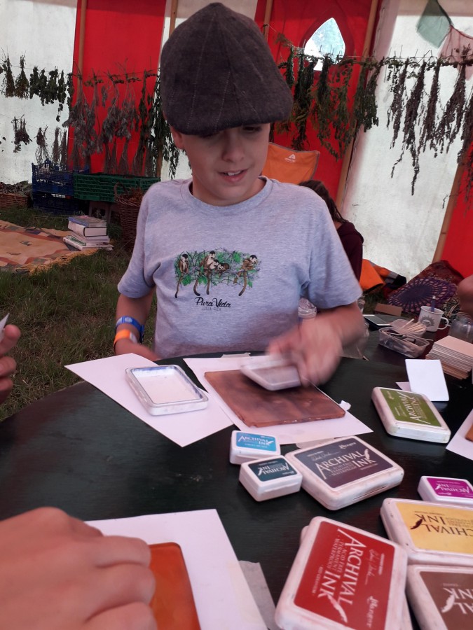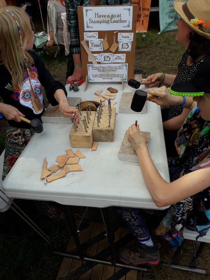 This made space for an expanded crafts area at in the Redwoods camping field. There were demonstrations and workshops of crafts and skills such as lathing and other woodwork, as well as the working of willow, metal and leather. One tent offered free workshops for making mosaics, dream catchers, willow making and ink printing, and much more.