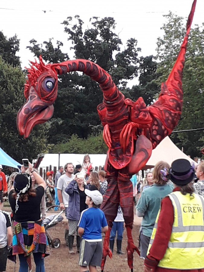 The unscheduled performances around the festival arena are certainly a feature that somehow improves year after year, despite always being astonishing. A popular favourite this year was the return of Close-Act Theatre. Their red Sauruses, STX drummers and Actred fan dancers were simply mesmerizing.