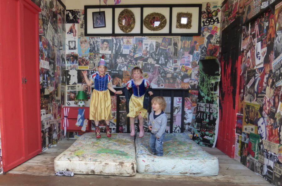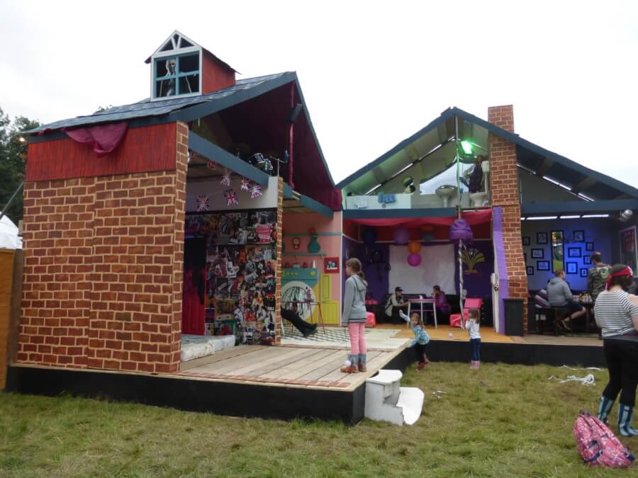 The festival had a big theme this year, the House Party, so there were themed art installations across the site. These were incredible, imaginative and inventive, and my children were delighted with them. The entrance was dominated by a huge child’s drawing of a house, and inside there was a full sized dolls house with different rooms to explore. You could even climb into a secret room inside the washing machine.