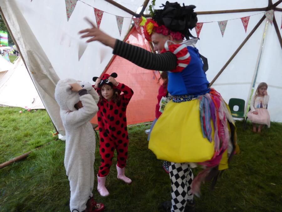 This was so popular with my children we spent a great deal of time there, and best of all you could see the main stage while sitting in the ‘living room’! So we could sit and chat and watch the stage, while the girls bounced on mattresses in the ‘bedroom’. We were even interviewed by some wandering performers at one point, I’m not sure quite what their characters were but it was very funny. The wandering performers at Blissfields are always top quality.