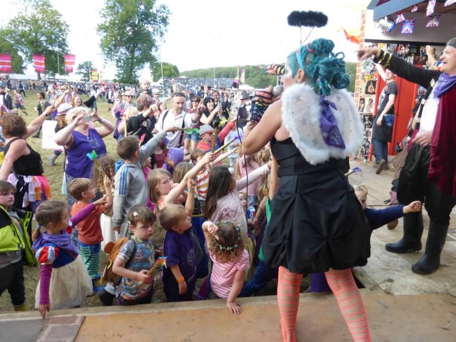This year Angel Gardens had a pantomime theme, which included a pantomime performance of Snow White running in pieces throughout the weekend and across the whole site.