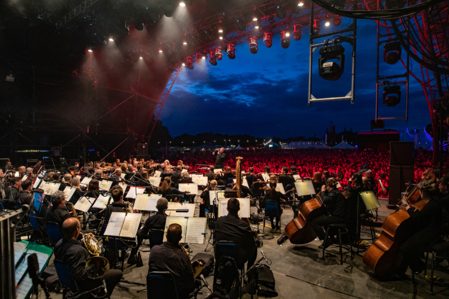 A giant moon hung near the entrance. At night the Lovell telescope danced with moving projections, forming a spectacular main stage backdrop for headliners including Hot Chip and Kraftwerk.