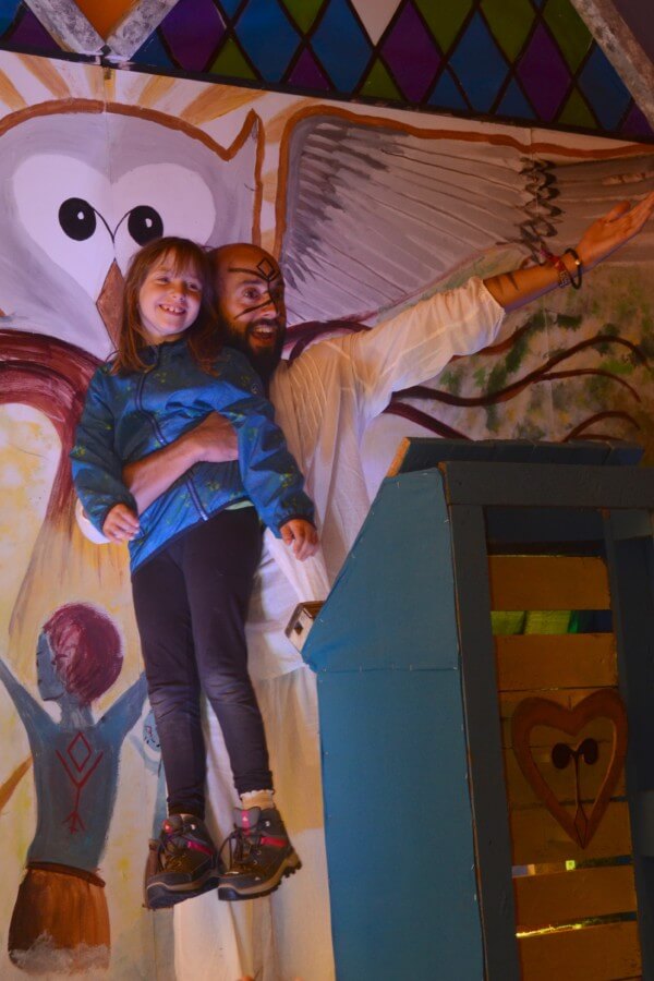 Downtown was a place to fill children’s imaginations. They attended a mock-religious service and were initiated as believers. They helped some cyber punks recycle aluminium cans into artwork. There were interactive installations everywhere and it was all mostly child friendly. The actors let us know if anything wasn’t suitable so we didn’t go in!