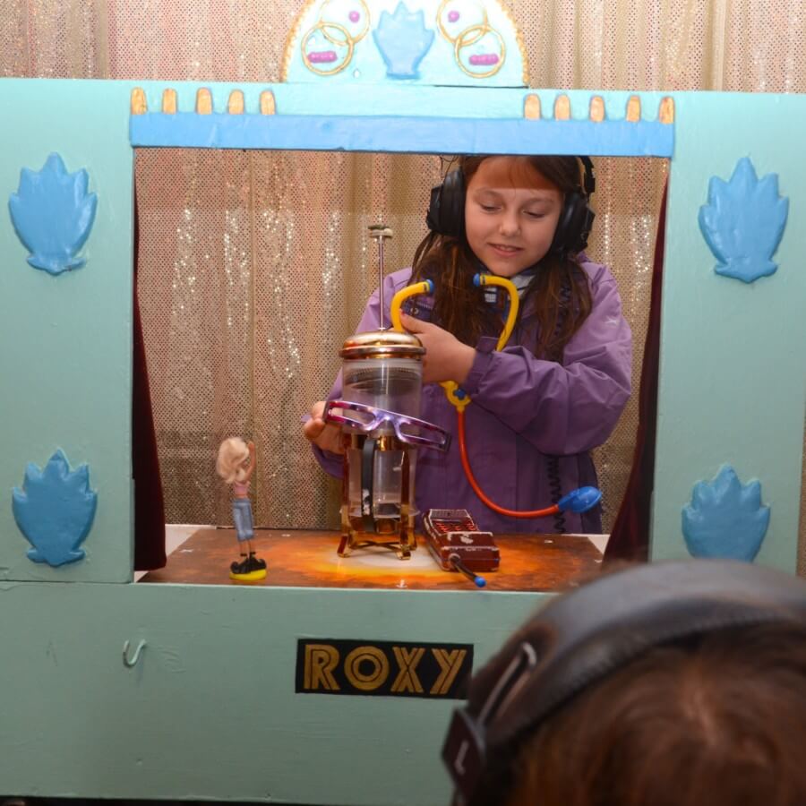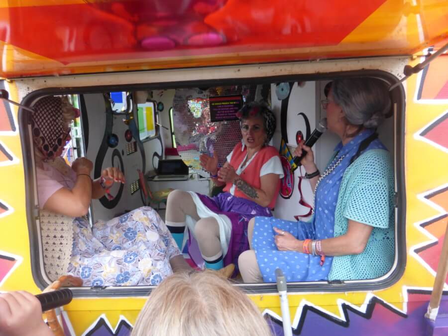 There was a sense of the festival’s artistic expression through all the kids’ activities too. Gunpowder Gertie recruited the children as crew on her ship, making them laugh and dance (and humiliating their parents) before firing her huge ‘art cannon’ at the children’s paintings. Granny Karaoke seemed to be grannies doing karaoke in a van, but I couldn’t get near it as the children were gathered round. Clapper Box cinema was a great place to spend a rainy afternoon (and we did). One child had to perform a film using objects as puppets to the other child who received the soundtrack and commentary on headphones, to very funny effect.