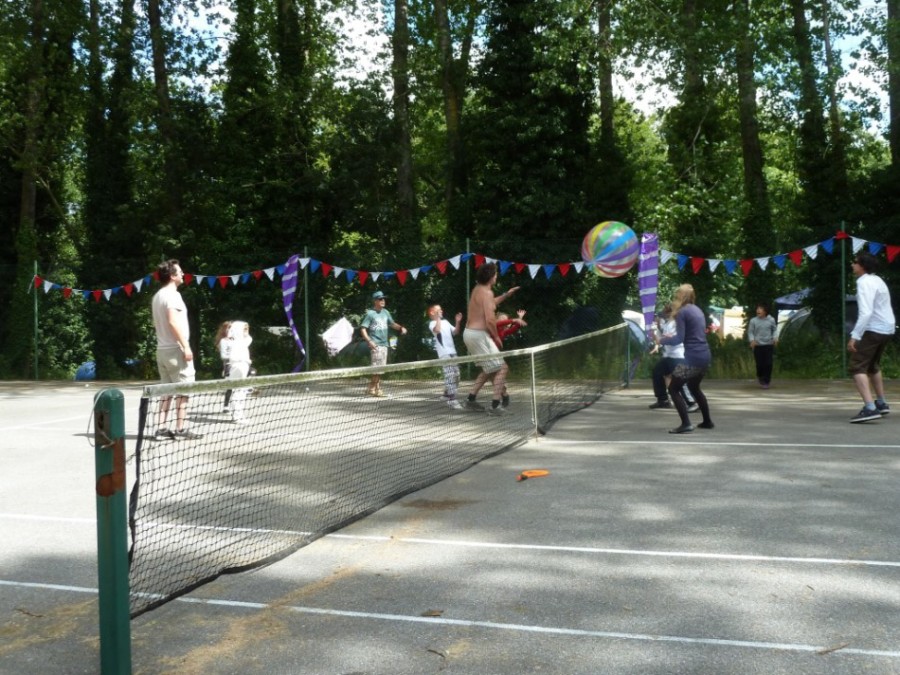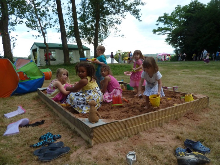 There was also a tennis court with a variety of balls and bats (none of which matched – I have made a note to bring tennis racquets and balls in 2014), a giant jenga and chess set, 2 little trampolines and the ever popular sandpit. And this was the beauty of the place for families because you could actually jump around on the dancefloor for a bit while watching your children happily playing on the other side of the field. And then you could go and join in with a beach ball volleyball game or a waterfight that had spontaneously started. Or you could just laze around chatting to new friends.