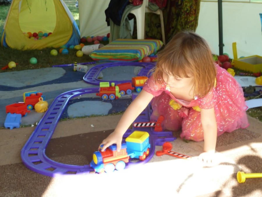 We were a five minute walk from the main part of the festival – which was spread out in two small clearings in the trees. In one clearing they had a kitchen serving food all day, as well as toys to keep the children occupied such as a big musical instrument for them to bang with spoons and a small maze.