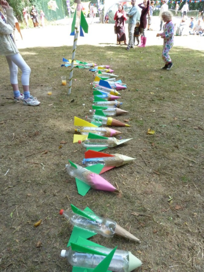 There were various activities at different times for children – our favourite was the water bottle rocket workshop where we spent the morning making them and then went out to the next field to launch them one by one to much cheering and clapping; as some of them failed and drenched the crowd while others soared high.