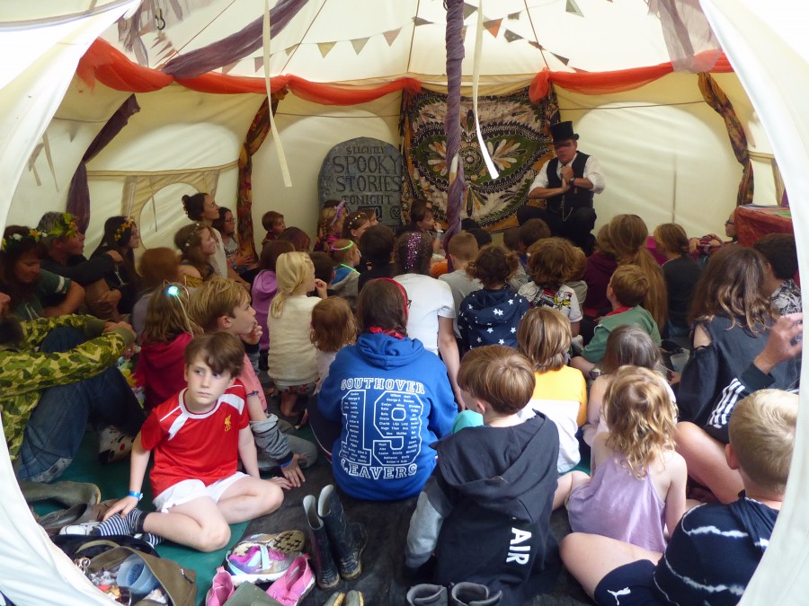 New to the festival was the Storytelling Tent deep in the woods. It was magical for the children to get their bedtime story in a bell tent surrounded by trees and butterflies.