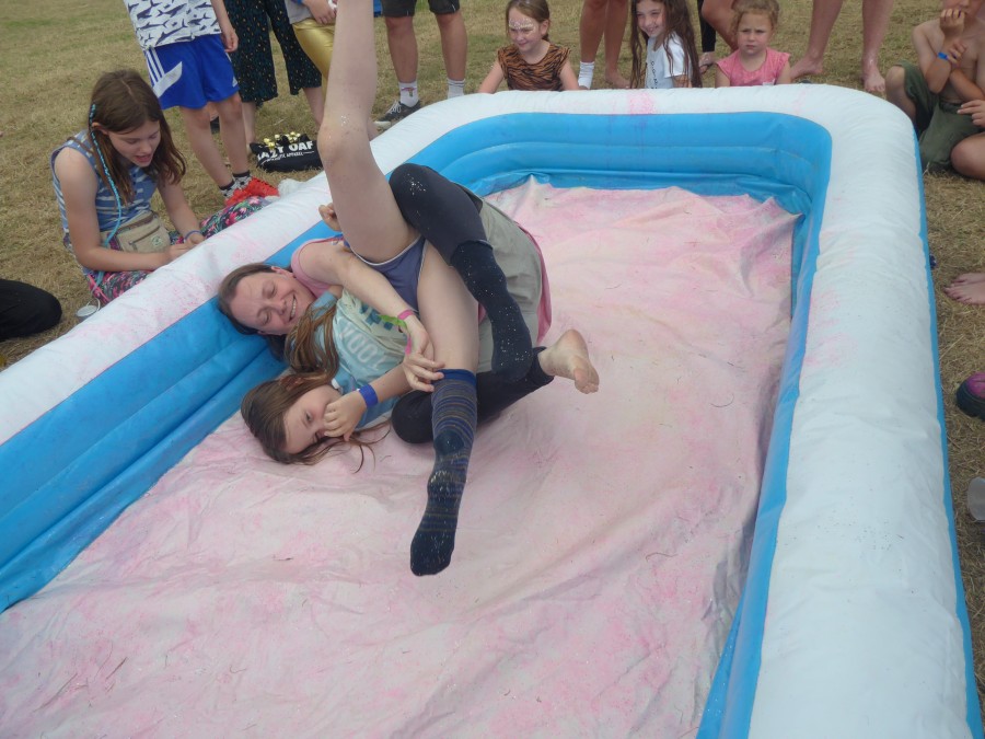 In what is becoming a yearly family tradition, the girls all challenged me to glitter wrestling. The festival wouldn’t be the same without this incredibly silly game. Rolling around in glitter trying to pull each other’s socks off is something you can’t do without laughing.