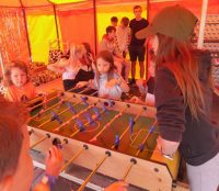 There was another large tent with games and toys available for free play. My children mostly wanted to be in the teenager tent which had the addition of a table football table and a pool table.