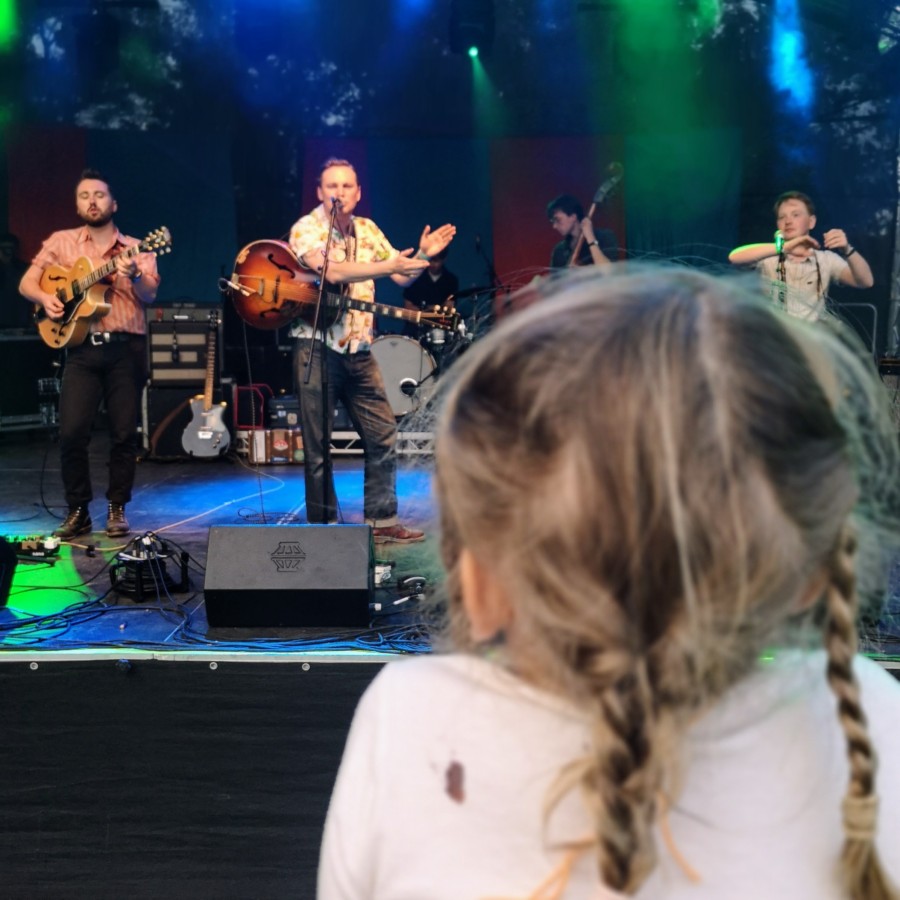All of which is before you get to the music. There were no big name chart acts here but a few of them deserve to be. My middle child (now known as Mosh Pit Martha) particularly enjoyed Ferris and Sylvester. We had a proper good dance to the Graceland tribute act on Sunday. But without doubt the biggest draw for all three kids was Elderflower Fields regular Nick Cope. Like so many families his laugh out loud lyrics and gentle, actually enjoyable, tunes have got us through many a long car journey. So the girls screamed with excitement when I told them we would be seeing him in real life. He didn’t disappoint at all. On the drive home Ada, who has only just turned two, was chanting “more Nick Cope, More Nick Cope!”