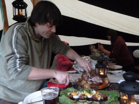 The event was held in a small clearing in the woods – we pitched our tents at one end around the communal bonfire, and the cider barn was at the other. The lovely marquee set up for our feast in the woods and a large smoking wardrobe (which I later found out was full of cheese) were the only other structures in the clearing, leaving plenty of room for the children to run around, play cricket, practice their circus skills or play fetch with the dog, while we could just relax and chat.