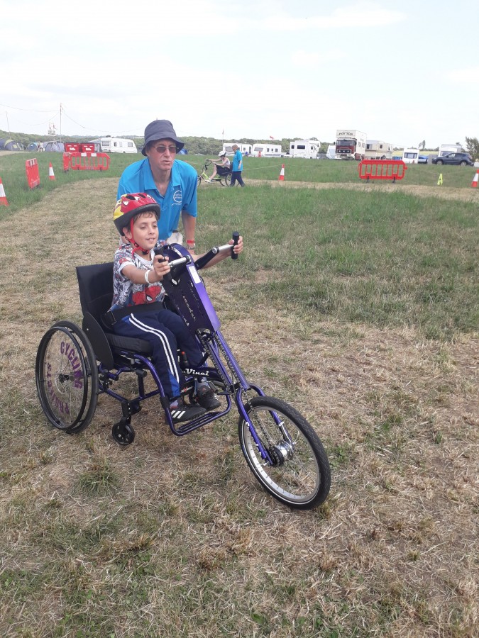 The campsite included a bar, a food outlet (offering burgers, breakfasts and hot drinks) and a camping store. Isle Access had an area at the top of the campsite, where guests could have a go on their range of accessible bicycles. We had a great time trying out all the bikes. We had fun using the handcycles, which are designed for those with reduced mobility in their legs.