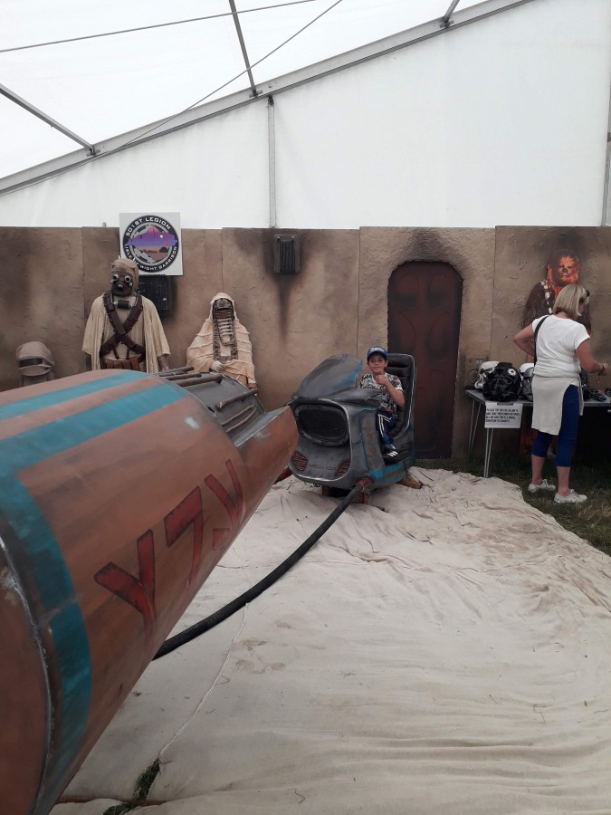 Comicoffee teamed up with the 501st Legion Isle of White Garrison to create what was without a doubt my sons favourite tent. The Star Wars display was extremely impressive and they had a steady flow of guests eager to pose for photos in a pod racer, wearing one of the helmets. We also loved seeing the Storm Troopers, Scout Troopers, Tie Fighter Pilots, and other characters participating in various activities around the arena, and chilling out on the sofas. As well as the delicious waffles and drinks, we also enjoyed playing on the retro computer games.