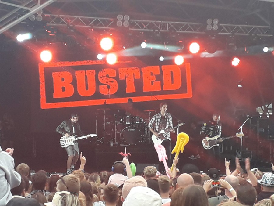 Busted blew me away! I was expecting boys doing kiddie rock, but of course they’ve been going for nineteen years now, and were awesome. I surprised myself by singing along to Air Hostess, What I Go To School for, and their last song – Year 3000. It was a great set. The band had so much energy, and clearly loved it as much as we did. Even the security staff were singing and bopping along!