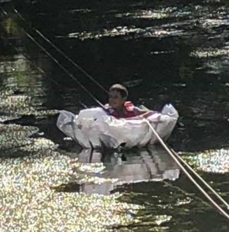 There were two ways to get out on the water with the Kayak Coach. Firstly, in one part of the festival, they were giving kayaking lessons. My son had just finished building and sailing his coracle, so instead we chose the more relaxing second option of canoe hire. We donned our helmets and life jackets, and cautiously entered the ‘divorce’ boat, and off we went. However, we neither fell out of the boat nor fell out in it.