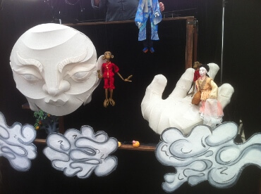 Equally as good was a puppet show written by Michael Rosen called ‘Monkey’. The hour long performance held our attention even though the tent was hot and the music from the Main stage was a bit distracting.