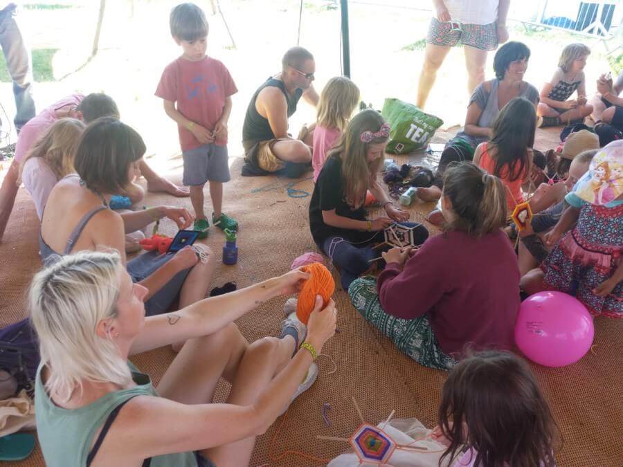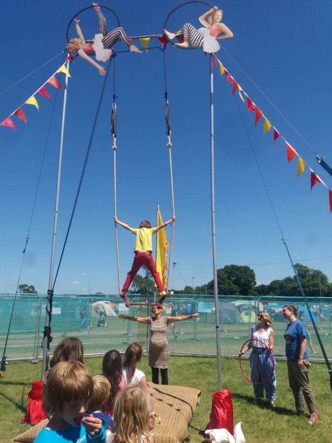 The kids’ area was simple and yet wonderful. About half of it was shaded, which I was so grateful for in the heatwave that we had over the weekend. In this part, children and their families could practise yoga, weave Gods Eyes, make candles, learn about bees, and then later conduct science experiments. There was music and a Naughty Fox! The uncovered side had a swing ball, a low badminton net with plenty of rackets and shuttlecocks. There was also enough space for an impromptu makeshift mini football pitch. In one corner was a trapeze, and in the afternoon there was a session to learn how to use it.