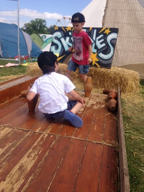 Jude found a country skittles alley, which was free apart from a donation to Water Aid. He spent a good few hours here, making friends, playing with children from around the world. Again simple fun which kept him happy for ages.