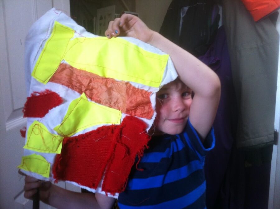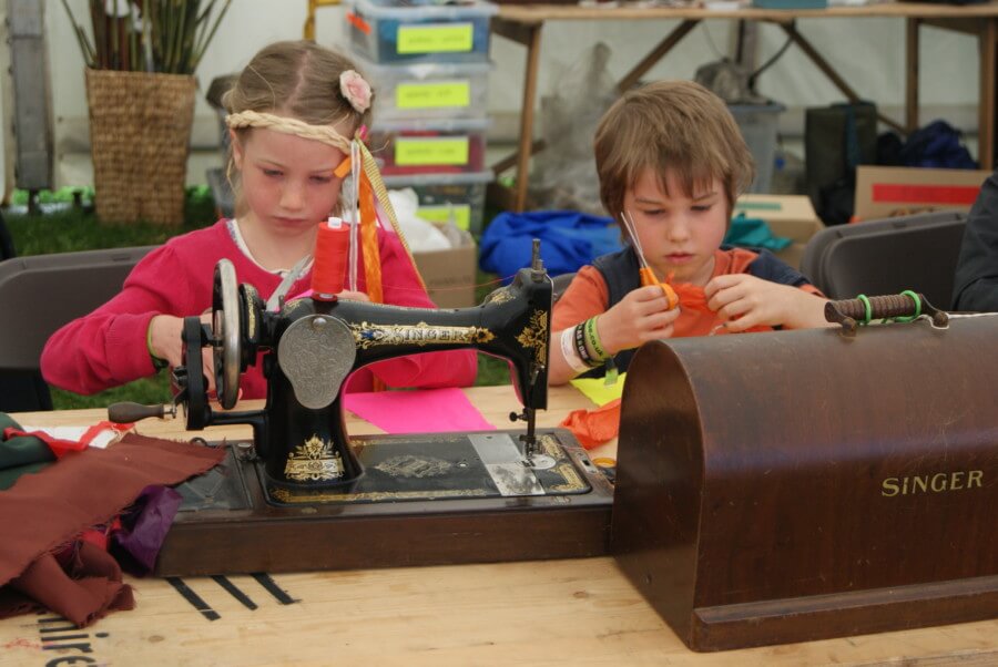 Another thing our kids love is crafting, and yes there is a place for cutting and sticking and bringing back a load or materials that could have been recycled and now resemble a state whereby it is difficult to recycle them and they clutter up the room. But what is really great is when a kid’s field offers a proper craft and they can produce something that will stand the test of time. So, it was with the leather crafting with Brian. It kept both our children engrossed and they even wanted to get up early on the last day to get another chance to make a leather bracelet. They also had the chance to make their own flags by sewing on their own designs using old hand turned sewing machines.